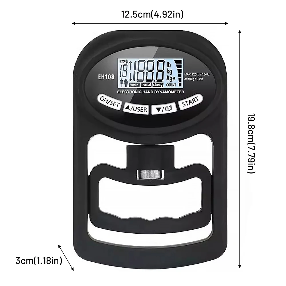 1. [Accurate and precise measurement of 0.265 pounds (120 kilograms) handle strength] - [Higher capacity] - Equipped with high-precision strain gauge sensors, the hand force gauge provides you with accurate numerical readings of grip strength. Measurement ability: 265 pounds/120 kilograms. Graduation: 0.2 pounds/0.1 kilograms. This is a perfect hand force tester for physical therapists, occupational therapists, sports coaches, spinal massage therapists, and general practitioners.